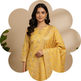 Resham & Zari Woven 3 piece Unstitched Unstitched suit set crafted in a soft Brown Rust tone with antique gold accents.The kurta features an elegant Diamond Chokdi Jaal pattern with fine resham and zari weaving, while the dupatta is adorned with a graceful Floral...Rs. 2,925.00 Rs. 2,486.25 15% OFF -