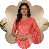 Celebrate Elegance with these beautiful Munga Pure Silk Unstitched Dress Material ,each set crafted with finesse and tradition. The Coral Pink Kurta fabric is adorned with graceful Zari Floral Buti, giving it a subtle yet sophisticated appeal. Complemented with Coral Pink salwar(bottom) and Temple...Rs. 4,500.00 Rs. 3,825.00 15% OFF -