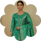 This graceful cotton silk blend 3-piece unstitched Unstitched suit set is designed in a serene Emerald Green tone, offering a perfect balance of comfort and festive elegance.The kurta fabric features a clean plain body, elevated with a finely detailed resham-woven ornamental border along the...Rs. 2,925.00 Rs. 2,486.25 15% OFF -