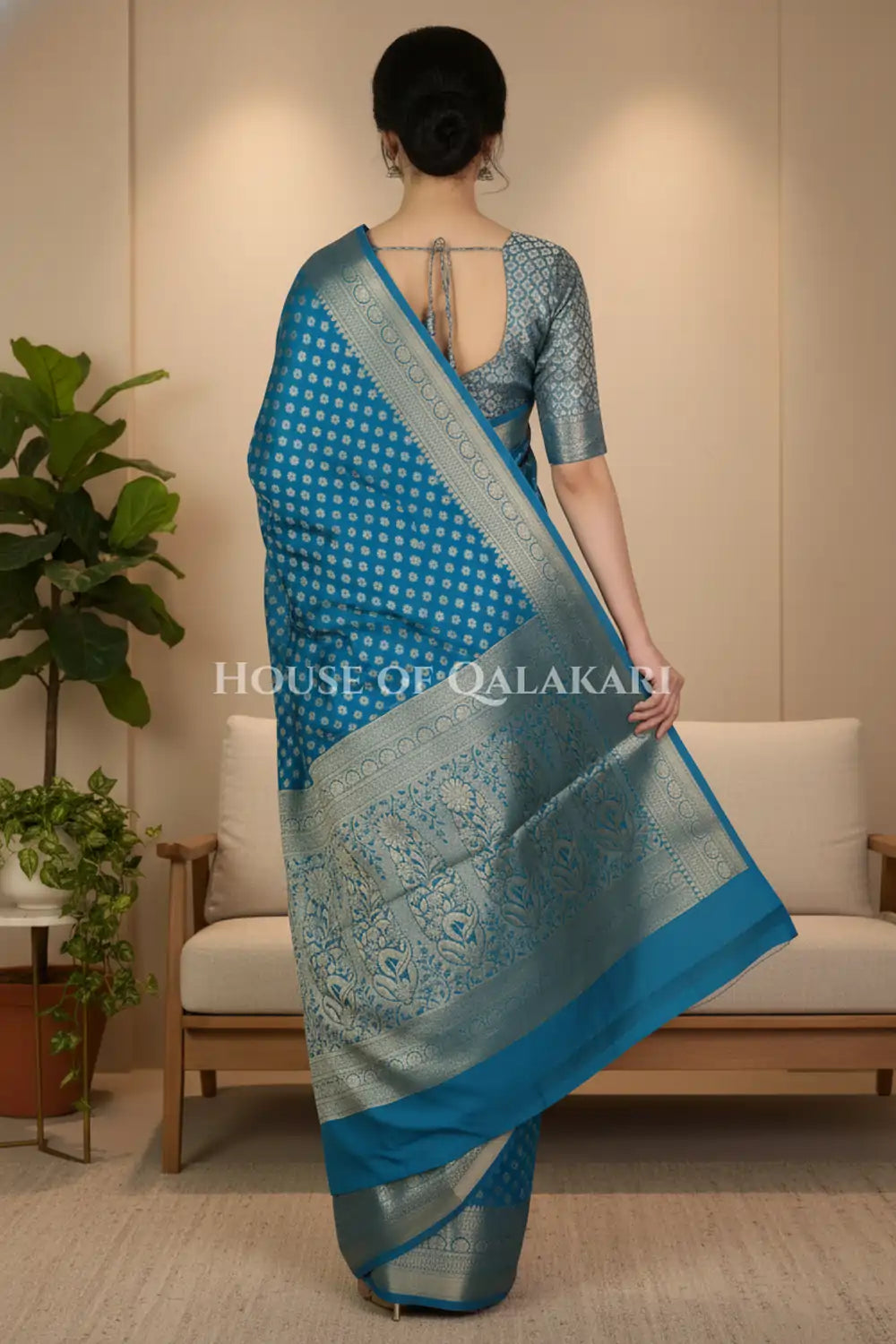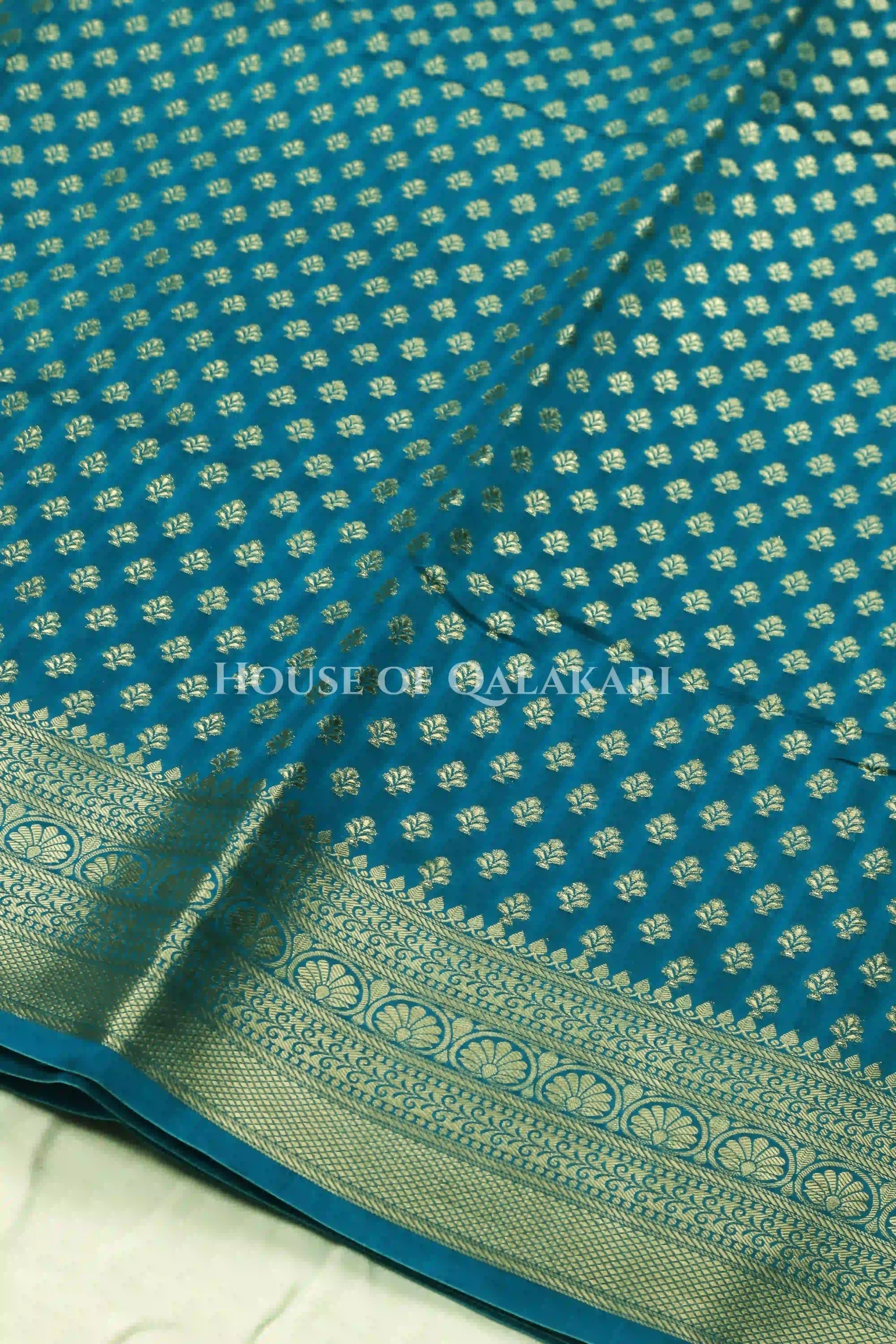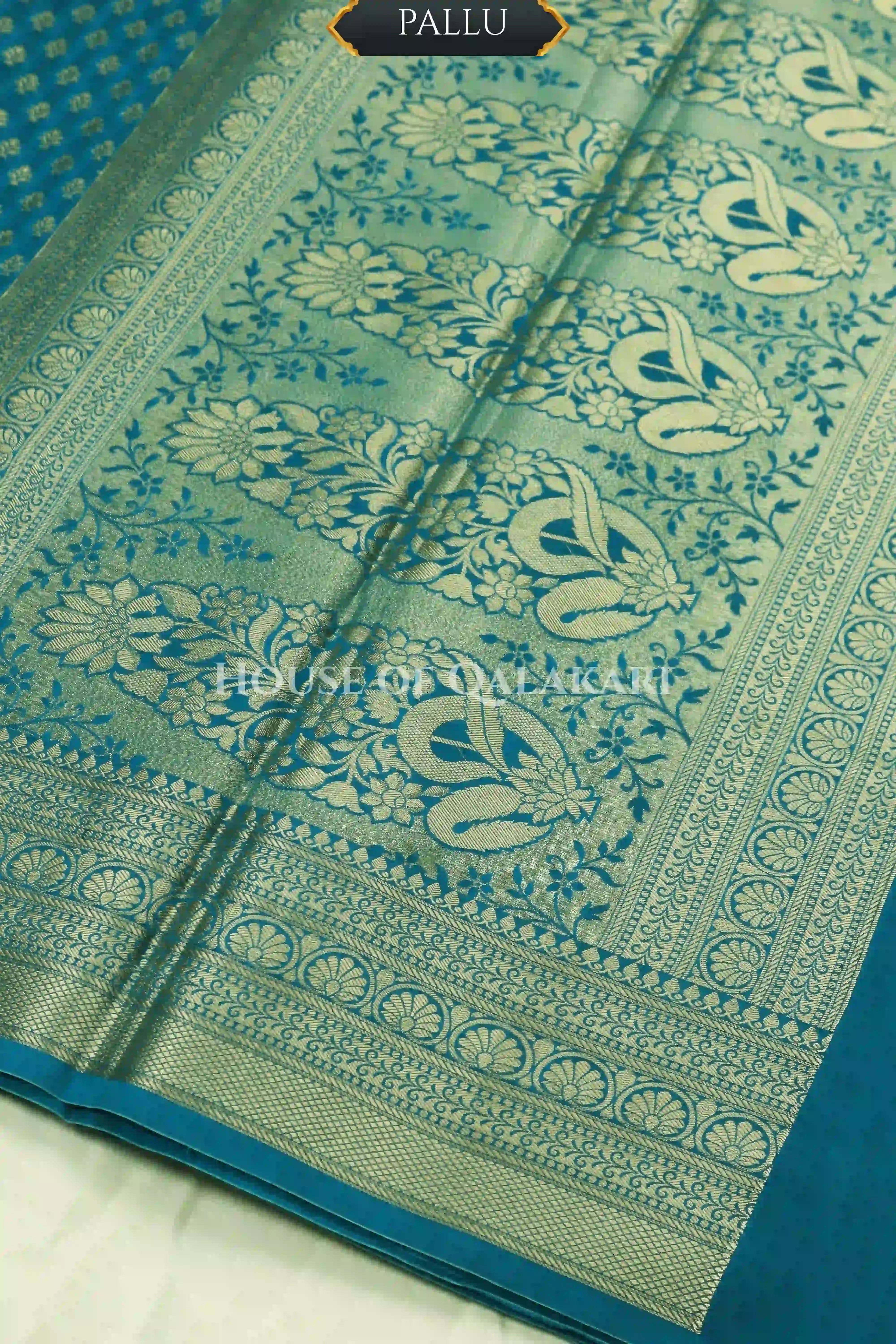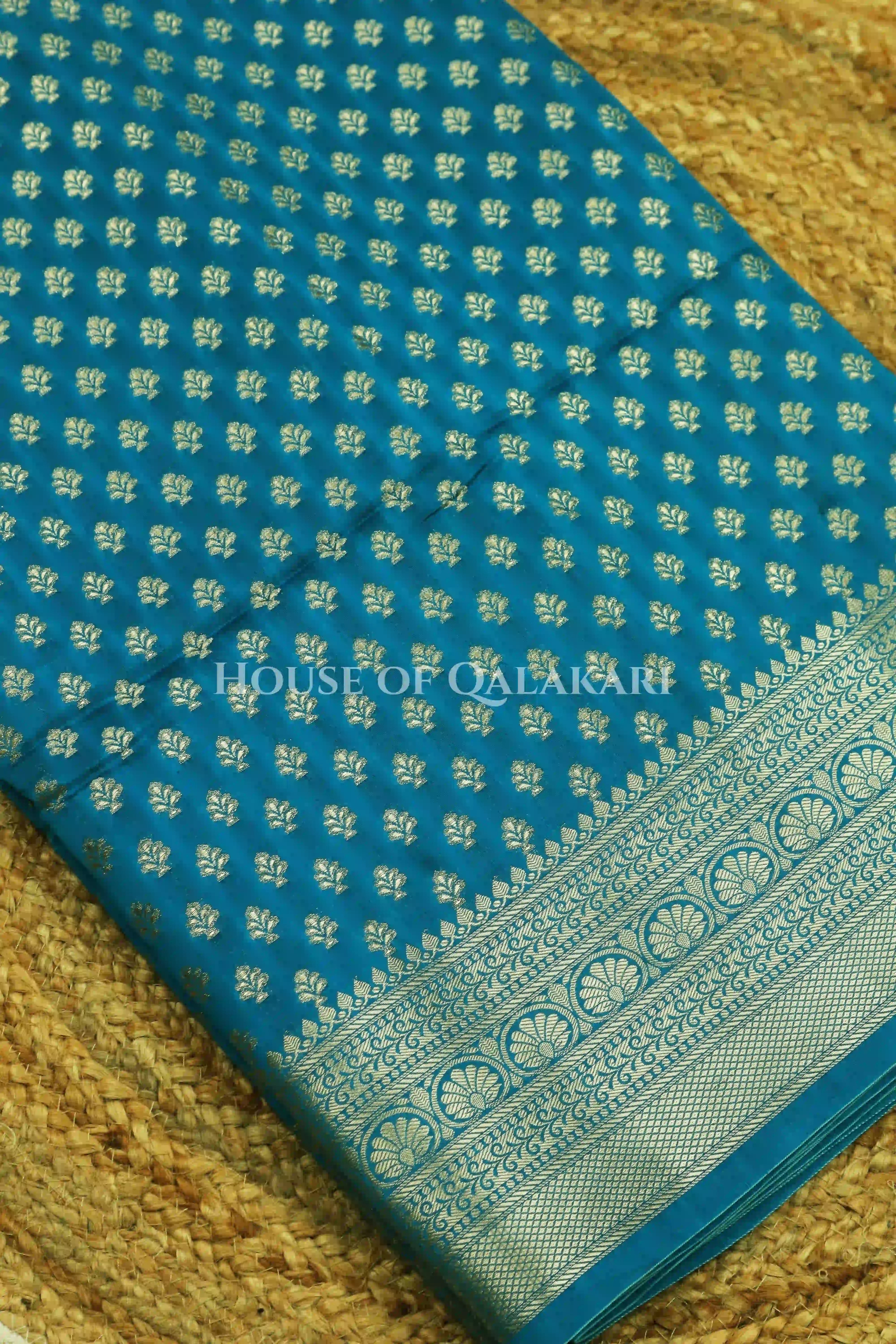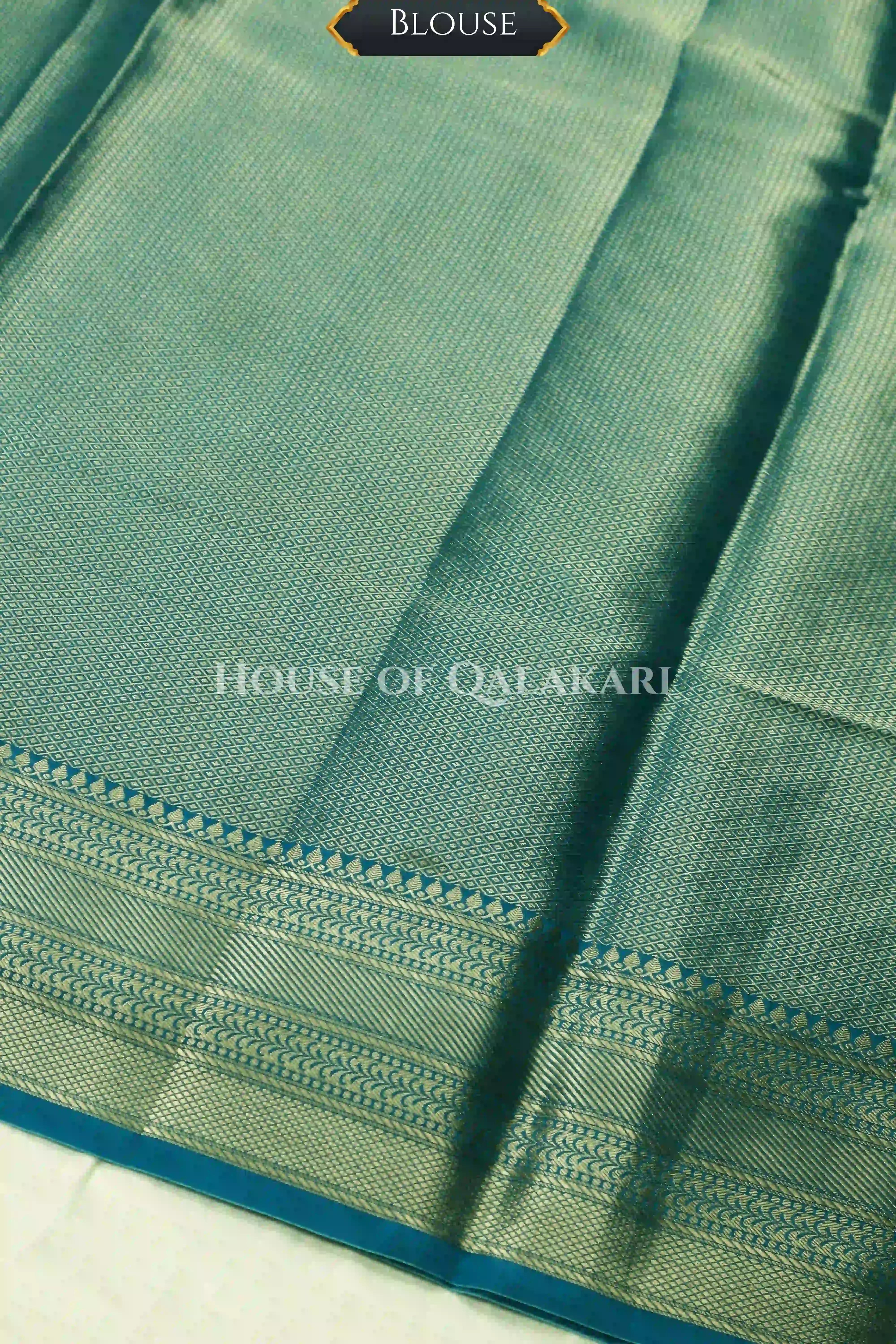 | Blouse | Matching Blue Brocade jaal with Zari Resham floral vines border |